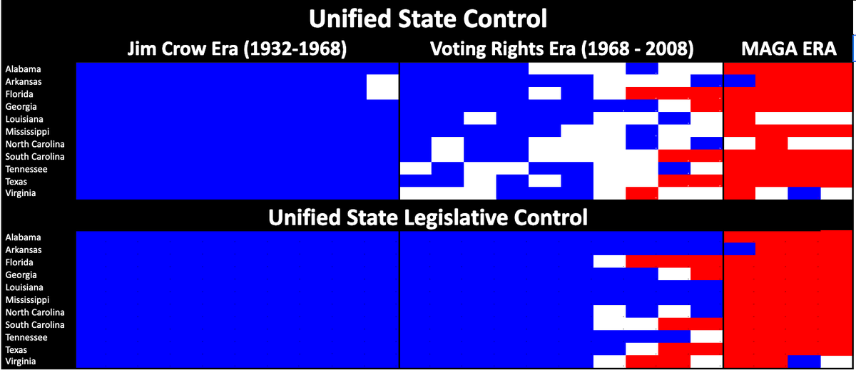 With the help of gerrymandering rulings by Federalist Society SCOTUS majorities, one-party rule returns to the South, almost rivaling the Jim Crow era.