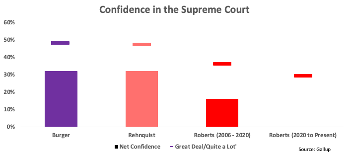 It shouldn't surprise us, then, that public confidence in the Supreme Court as an institution has collapsed. (first chart)