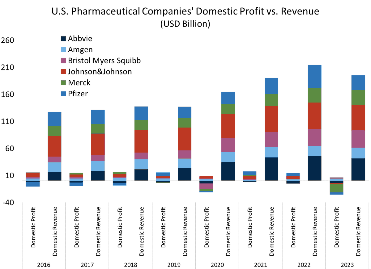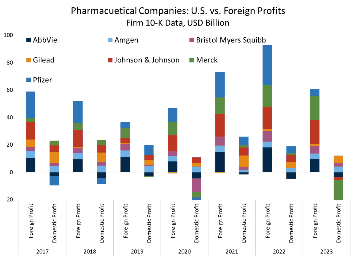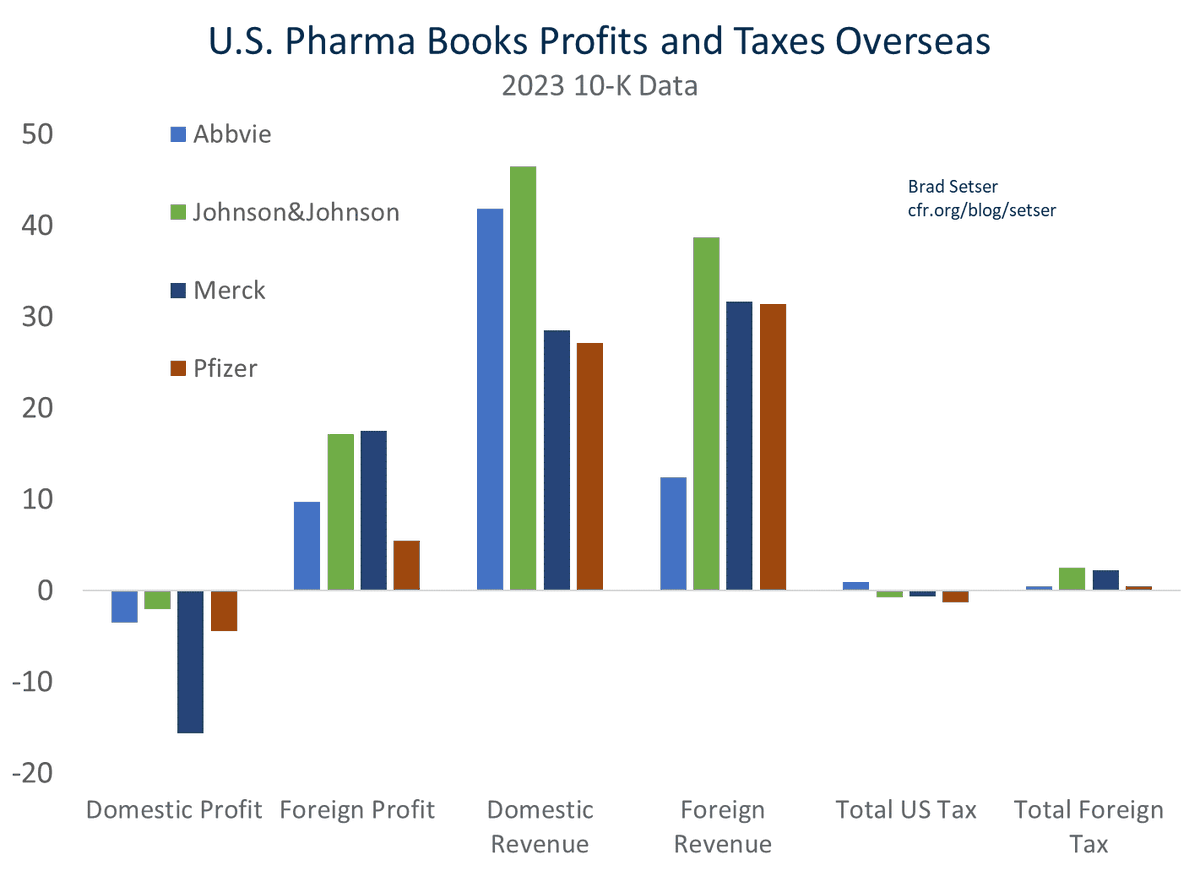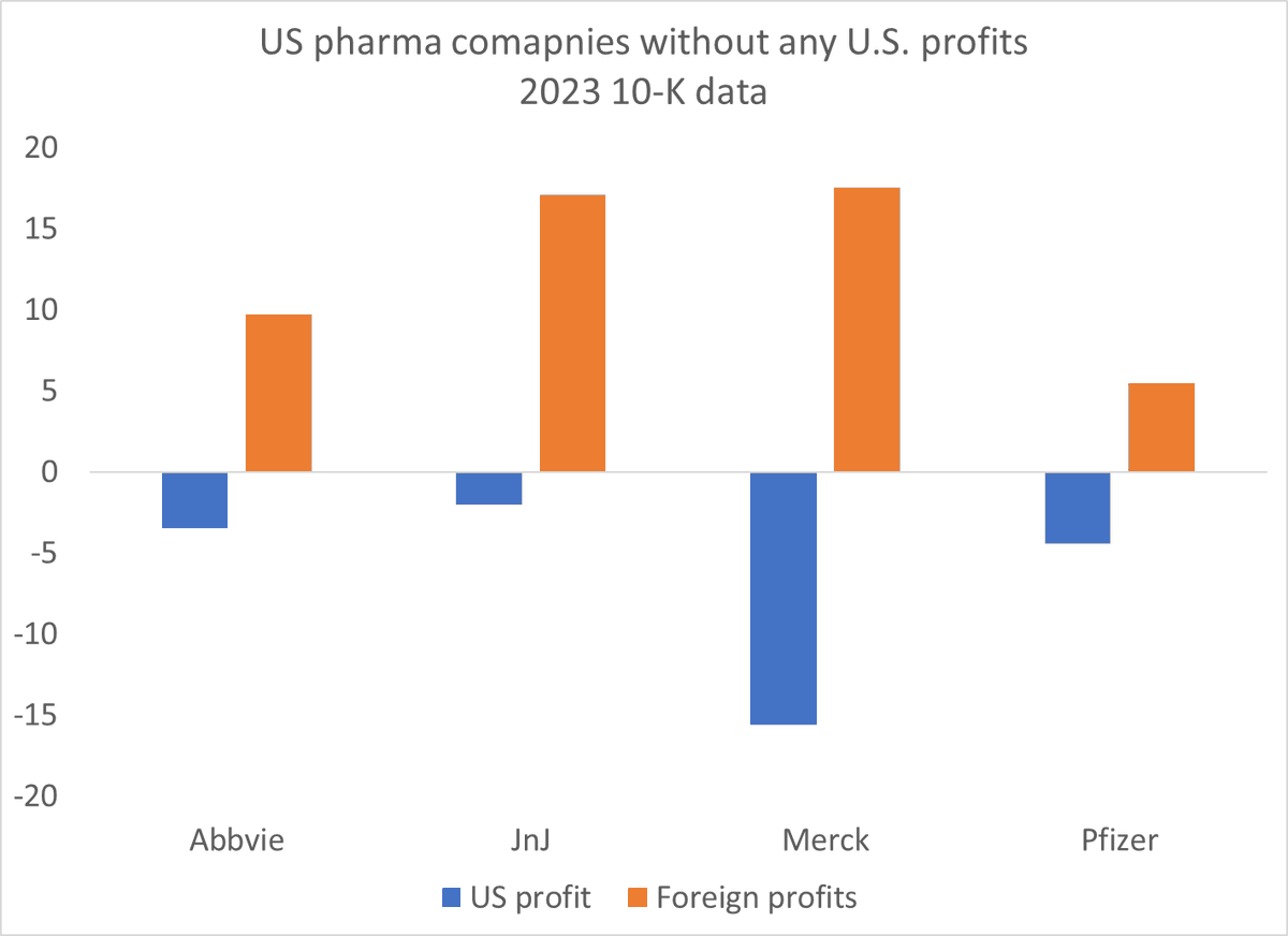 American pharmaceutical companies are apparently running a low margin business in the US -- very modest (reported) profits relative to their US sales, and smaller reported US profits than before the TCJA.