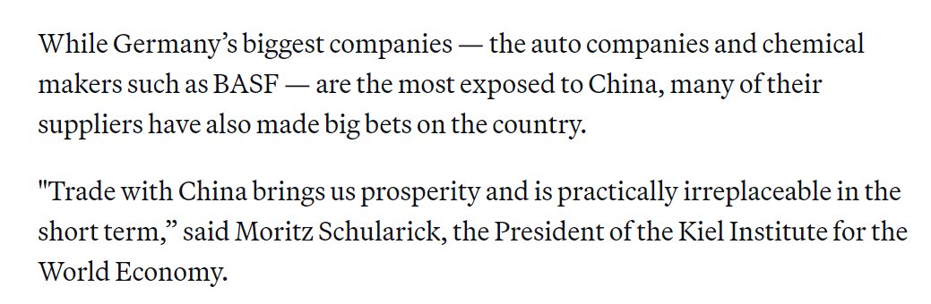 A lot of political reporting still casually equates the interest of (German) business operating in China with the interest of the Germany economy. Politico for example ...