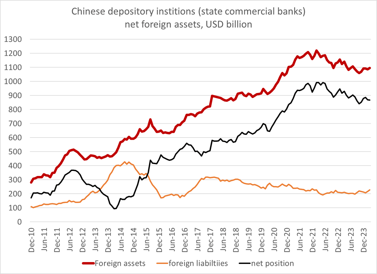 of course, being China, the relevant data doesn't quite line up -- the state commercial banks foreign asset position (assets net of liabilities) was flat in March