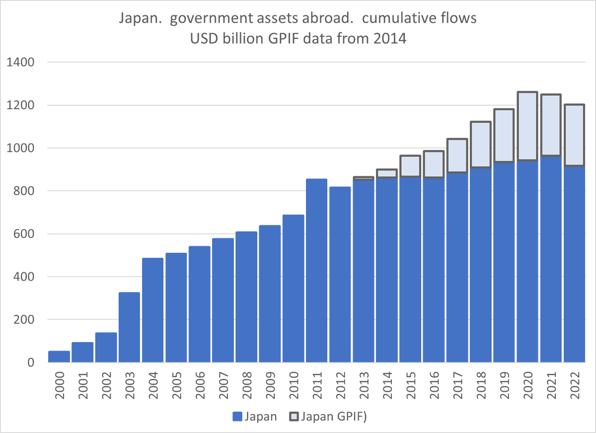 If you count the GPIF, Japan's government was pretty steadily adding to its dollar assets through 2020, and it hasn't even made a dent in that stash in recent years