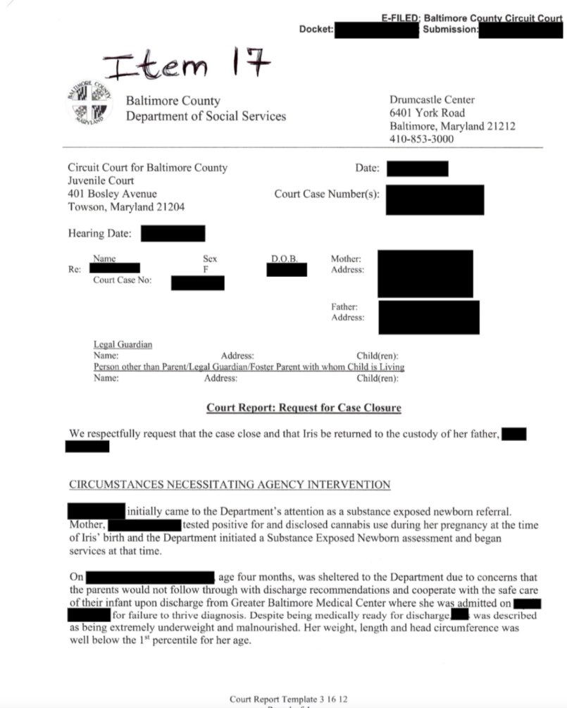 The government opened an SEN case (Substance Exposed Newborn) against this whistleblower as an attempt to takeaway her child claiming her child had ‘Failure to Thrive’, with proof of the case below: