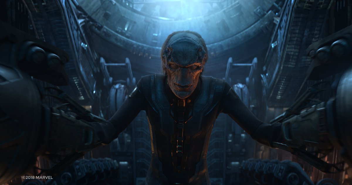 Thanos and Gamora travel to Vormir to obtain the Soul Stone, where they come across The Red Skull, the villain from Captain America: The First Avenger. Hugo Weaving was asked to reprise the role but said no, and was replaced by Ross Marquand.