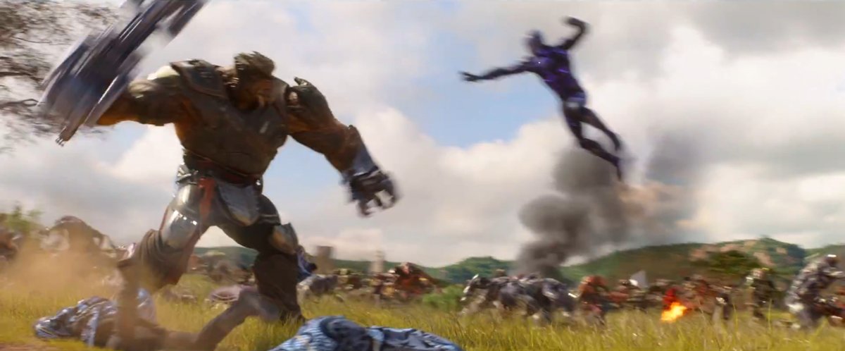 To keep the plot a secret, trailers were put together which showed the Hulk taking part in full green from in the Battle of Wakanda. In the film, Banner is inside the Hulk-buster suit.