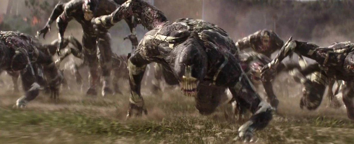 The name of Thanos’ creatures that attack Wakanda is the Outriders – they’re taken from the Infinity comics. Rocket calling them “space dogs” came from an audience test screening, where an audience member called the Outriders "those space dogs."