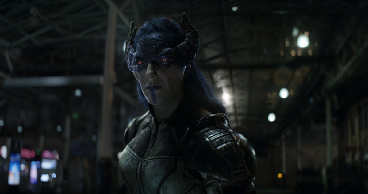 Proxima wears a black horned helmet in the comic books. This was changed to horns growing from her head, to avoid similarities with villain Hela (Cate Blanchett) from Thor: Ragnarok. It’s not mentioned in the film, but Corvus Glaive and Proxima are husband and wife.