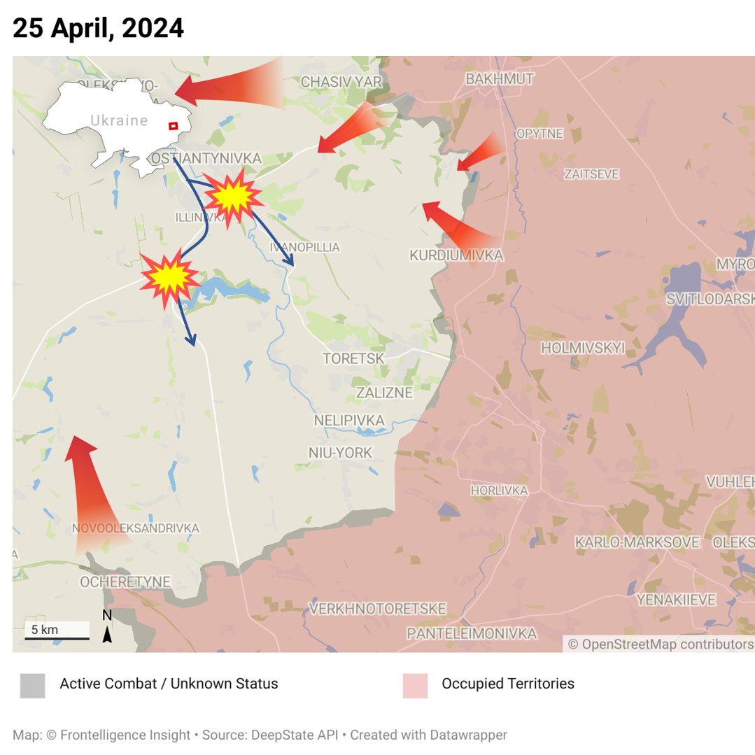 Russian forces have gained tactically near Ocheretyne and Chasiv Yar, and have attempted a large assault towards Sivers'k. Frontelligence Insight provides a concise analysis of the current situation in this 🧵thread