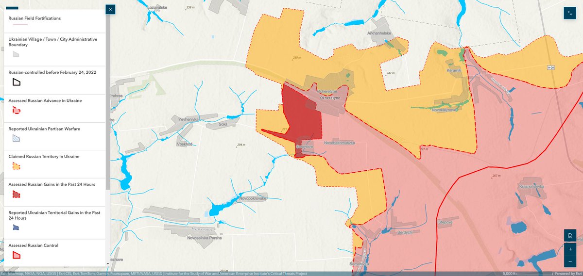 2/ Russian milbloggers claimed that Russian forces advanced 3.85 kilometers wide and two kilometers deep into central Arkhanhelske (northeast of Ocheretyne and north of Avdiivka) from Ocheretyne and Keramik (north of Avdiivka).