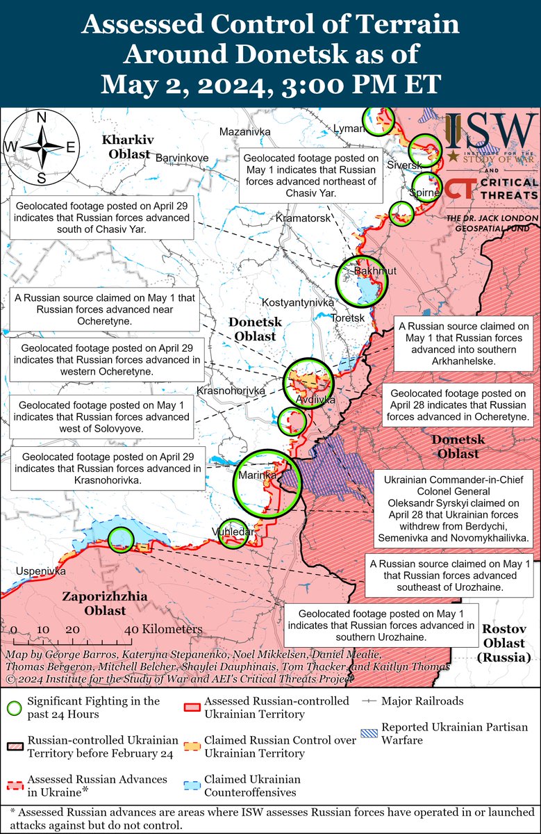 Details in the Russian Offensive Campaign Assessment for May 2, 2024: isw.pub/UkrWar050224