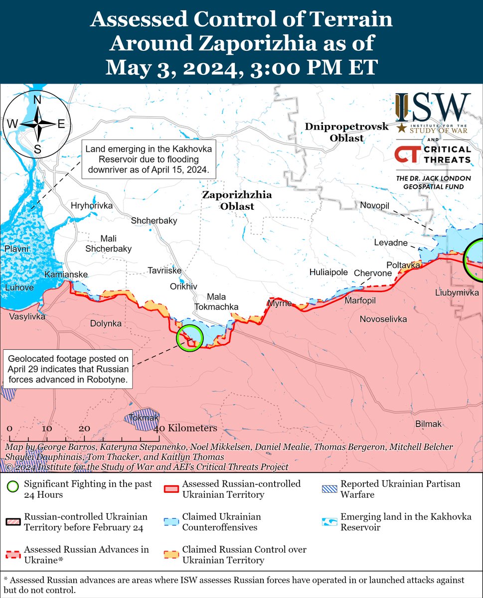 2/ UKR Ground Forces Commander LTG Oleksandr Pavlyuk reiterated in a May 3 interview w/The Times that Russia’s offensive goals in 2024 are to seize all of Donetsk and Luhansk oblasts and that RU forces may attempt to seize the rest of Zaporizhia Oblast in 2024 if they seize the Donbas.
