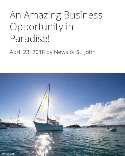 "Well folks, I know that many of you are going to be interested in today’s story…Who wants to run a successful business in the Virgin Islands??!! Well, this may be your chance…