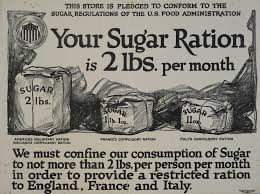 Sugar was famously rationed during the world wars along with fats and regular propaganda posters along with ration books regulated consumption for the manufacturer of explosives.