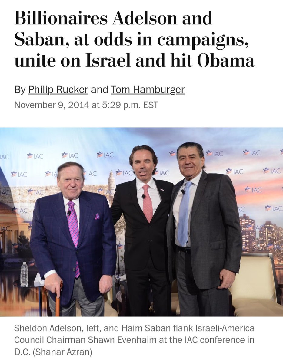 Instead, they have been conceived, pushed, and funded by Israeli expat billionaires in collusion with Netanyahu and the Israeli government and lobbied through congress by AIPAC.