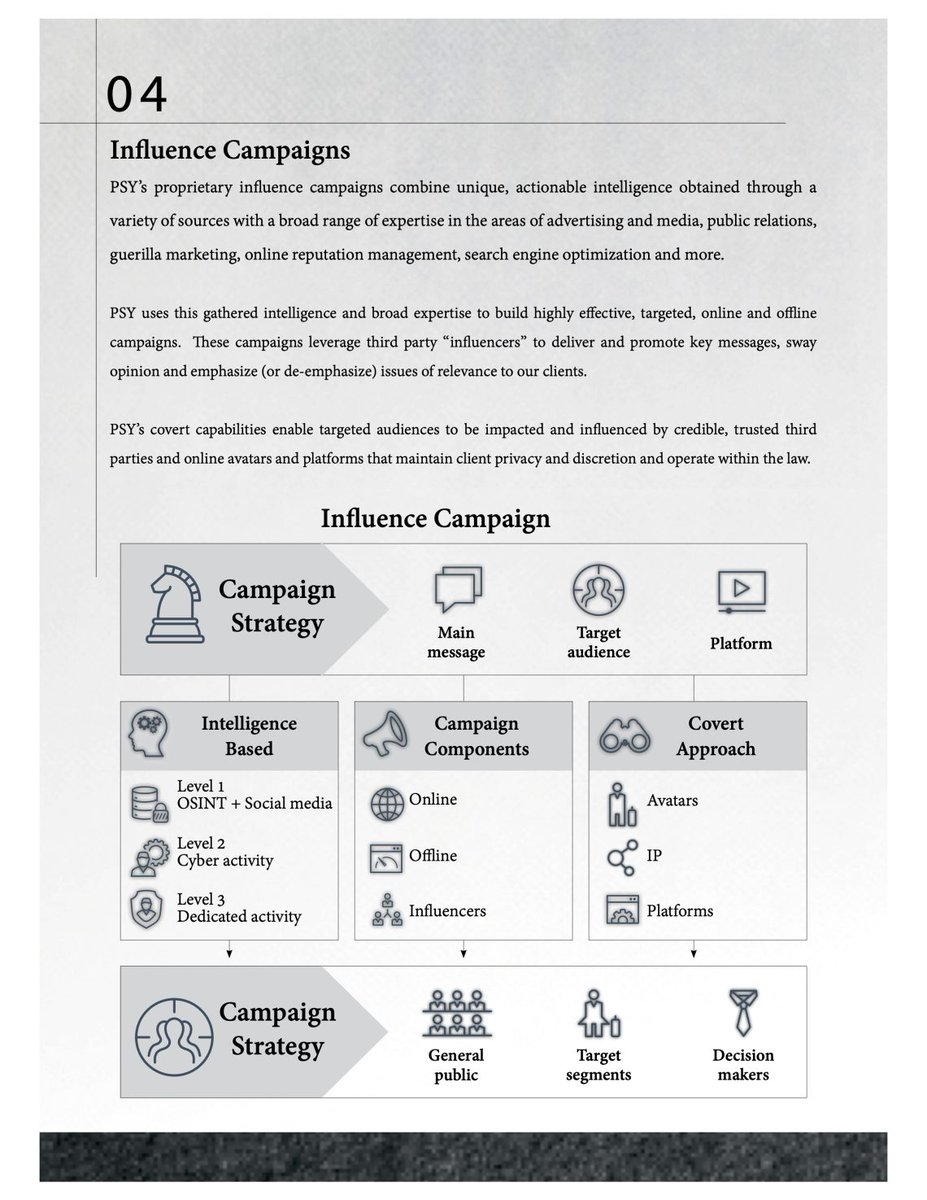 Psy-Groups tactics included subjecting people to unwarranted investigations, charges of persecution, endless phony accusations of antisemitism, creating fake news outlets, phony online personas, fake social media posts, and other forms of information warfare,