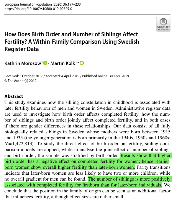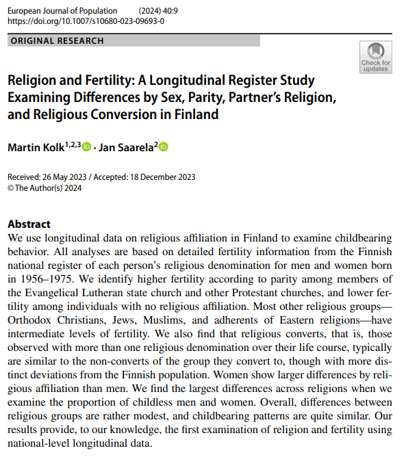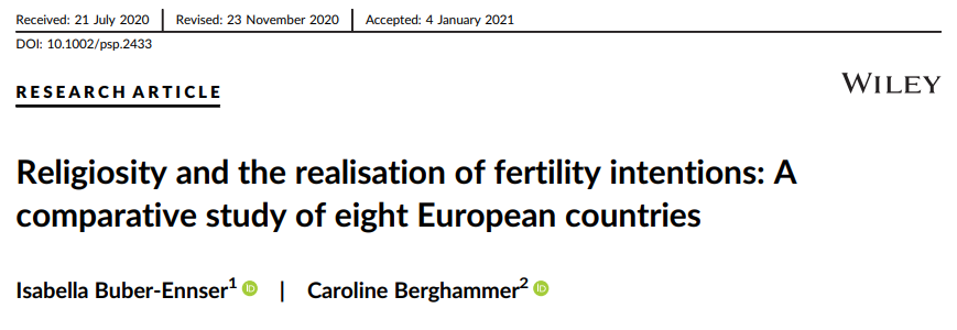 Berghammer et al. (2020) studied eight European countries and found that religious people have more kids, and their views on family intention are formed very young, even in childhood. In these countries, the fertility advantage was 1/2 a child per woman. (N=34,000) 2/12