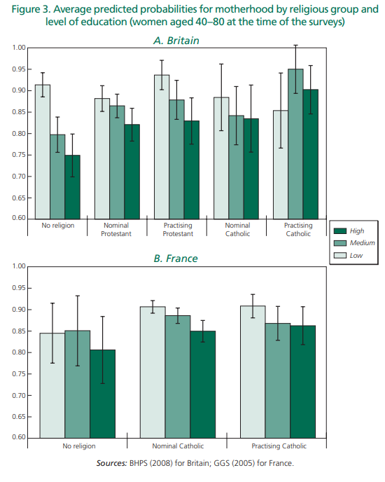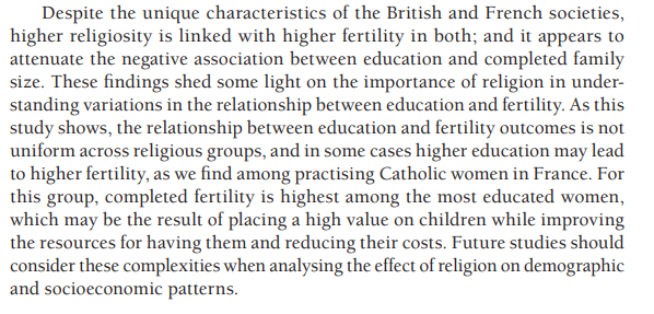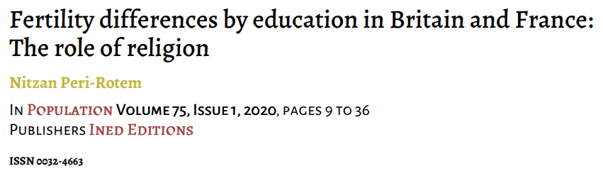 Peri-Rotem (2020) looked at the interaction between religion, education and fertility in the UK and France.