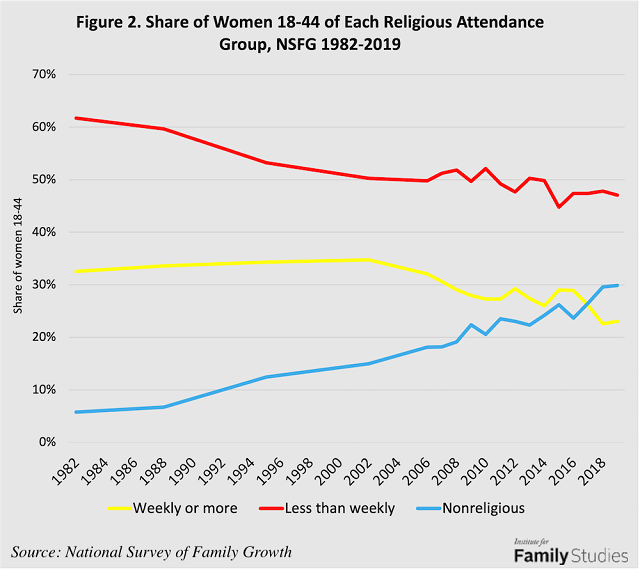 Meanwhile, there was "no change in fertility among women who did not grow up in religious households." 3/5