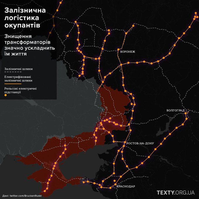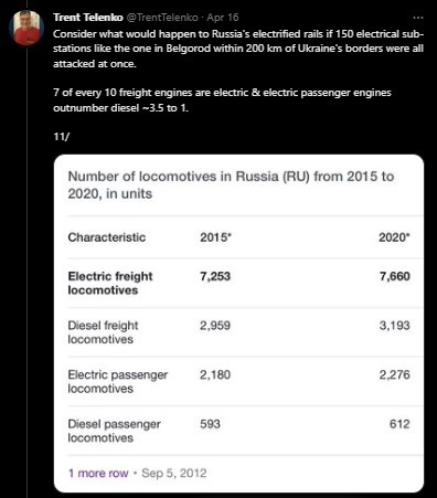 Systematic targeting of these electrical facilities powering the railways within 200 km of Ukraine's 1991 border with Russia will logistically isolate the RuAF frontline units in Ukraine from 70% of rail supply.