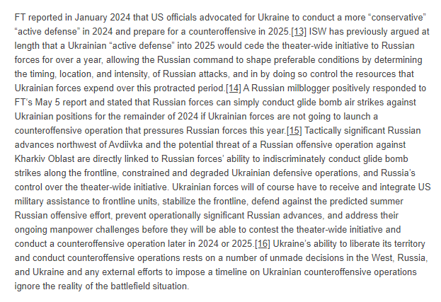 2/ ...although ISW continues to assess that Ukraine should contest the theater-wide initiative as soon as possible because ceding the theater-wide initiative to Russia for the entirety of 2024 will present Russia with several benefits.