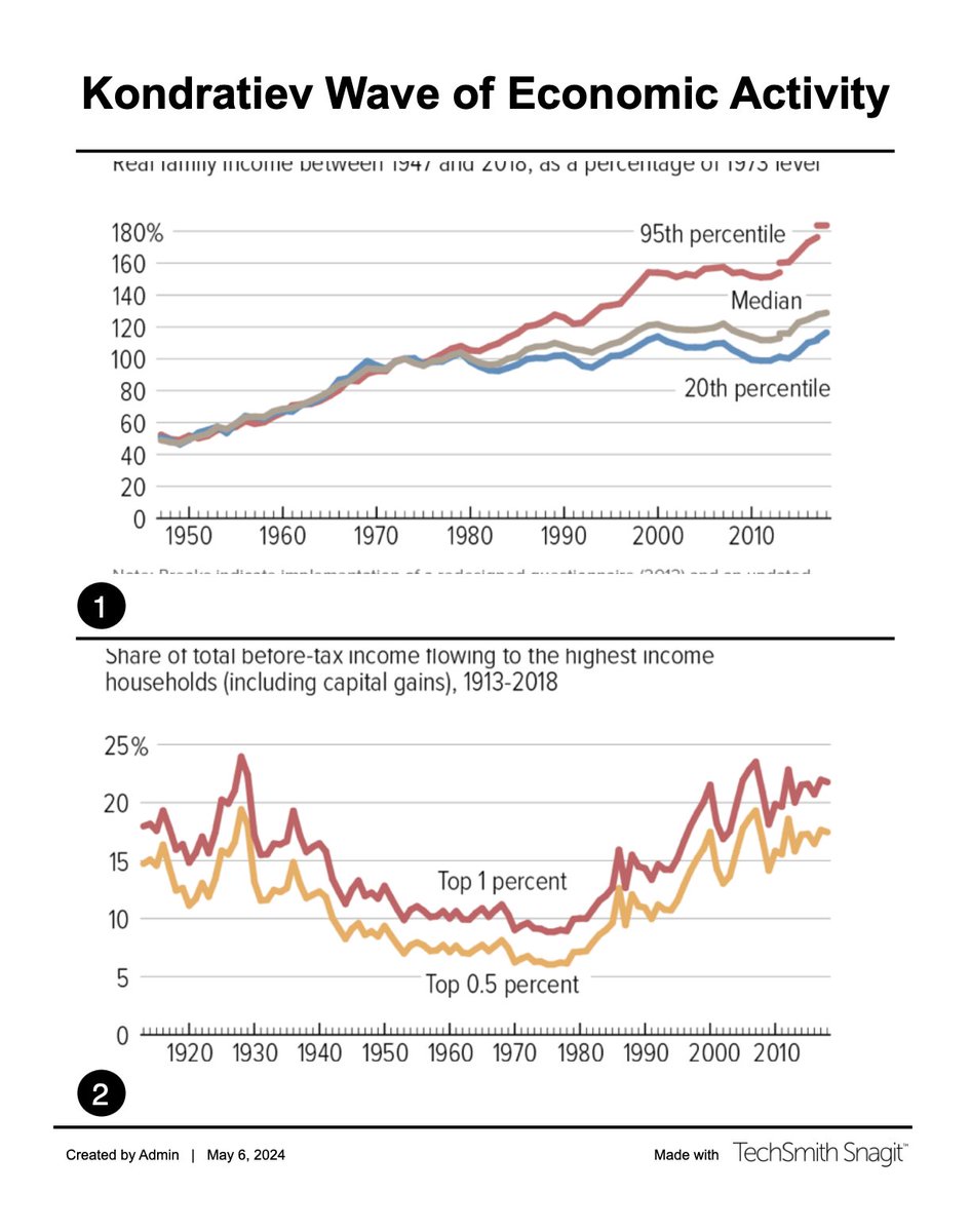 The concentration of wealth in capitalist societies reoccurs with the Kondratiev wave until it is relieved by a more equitable distribution of wealth that comes with a resurgent economy based on new forms of production that technology makes possible.