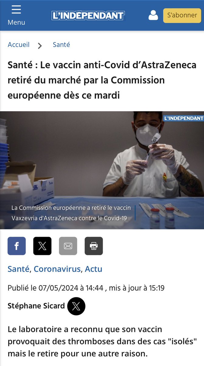 Depuis quelques jours, l’information tournait sur le retrait de l’autorisation de mise sur le marché du vaccin #Covid #AstraZeneca