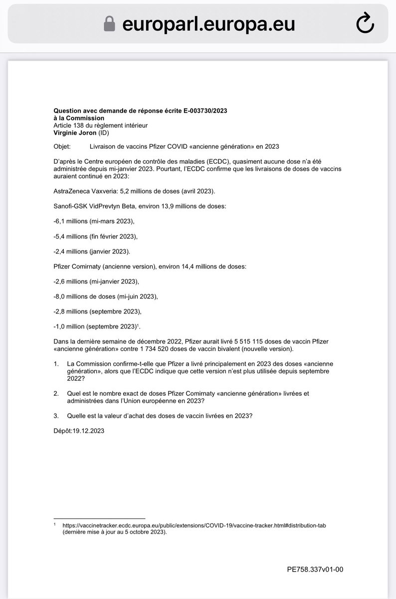 4,6 milliards de doses commandés par la Commission Von der Leyen => sans jamais avoir justifié le pourquoi de cette énorme commande qui nous engage encore des années !