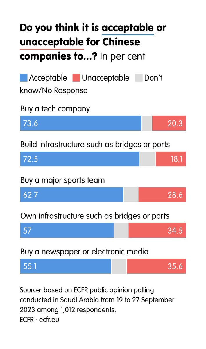 Globally, #SaudiArabia fully embraced multipolarity as a system that expands their options. As proven by an @ecfr survey, Saudis think they can navigate the risks, ie on #US-#China-#Russia rivalry.