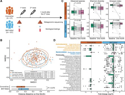 2) In this first study, researchers examined the relationship between gut microbiota composition and immune responses/adverse events in 138 individuals who received either the CoronaVac inactivated vaccine or the BNT162b2 mRNA vaccine against COVID-19.