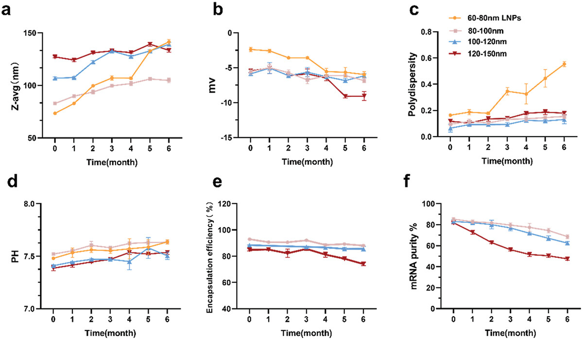 3) The researchers studied how LNP size affects long-term stability and immune protection of an experimental COVID-19 mRNA vaccine. They produced four formulations ranging from 80-150nm using consistent lipid composition and mRNA.