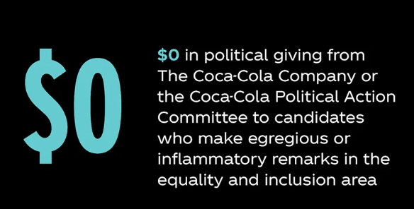 1. @CocaCola, as part of its "racial equality plan," pledged it would donate $0 from its corporate PAC to "candidates who make egregious or inflammatory remarks in the equality and inclusion area."