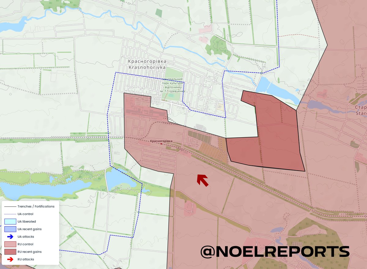 ➡️New geolocated footage shows Russian advances east of Krasnohorivka into the first streets of the settlement. Russia's strategy is clear: connect the troops entering from the east with those that have already taken parts of the settlement in the south.