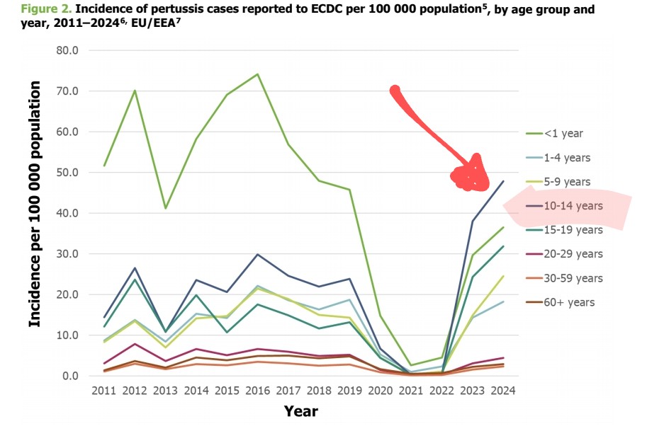 10) But there is something strange in the ECDC report. The strongest progression concerns 10-14 year olds. It is difficult to speak of "immunity debt" (or even immunity gap), or even a drop in vaccinations in this age group.
