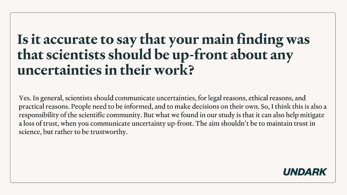 @unipotsdam The study found that explaining uncertainty in scientific findings doesn't erode trust; instead, it buffers against a loss of trust when evidence changes.
