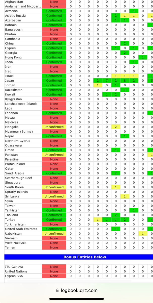 But I only have 37 out of the 54 nations the ham radio community recognizes in Asia