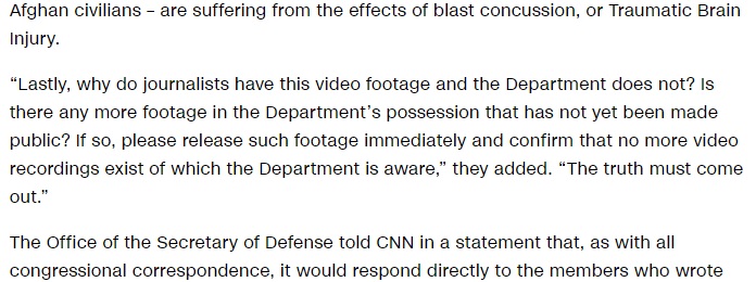 One thing the congressmen want to know is how CNN obtained the GoPro video when DoD claims not to have it. As I've said, I think that's because the Pentagon isn't telling the truth.