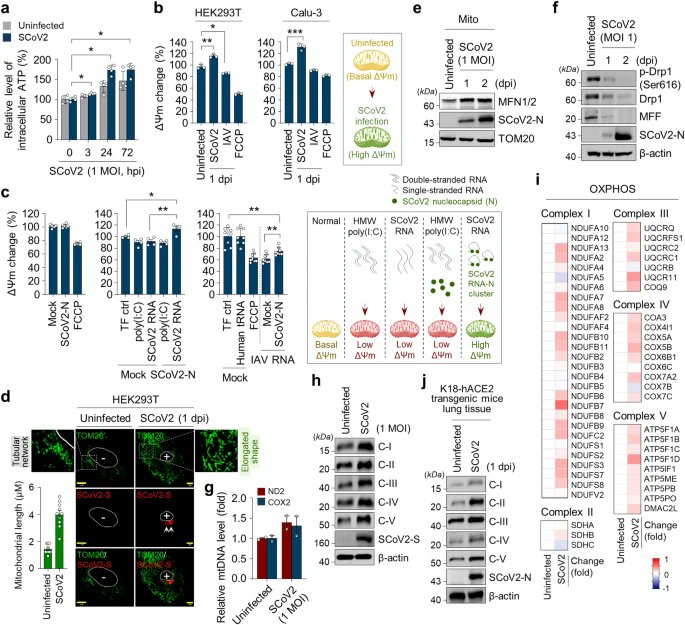 2) SARS-CoV-2 infection aberrantly elevates mitochondrial bioenergetics and induces mitochondrial elongation during the early stages of infection in human cells. This promotes ATP generation to support robust viral replication.
