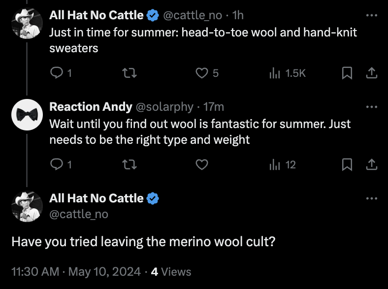 It's a misconception that wool is necessarily uncomfortable in the summer. Or that linen is necessarily better than wool. Let me show you. 🧵