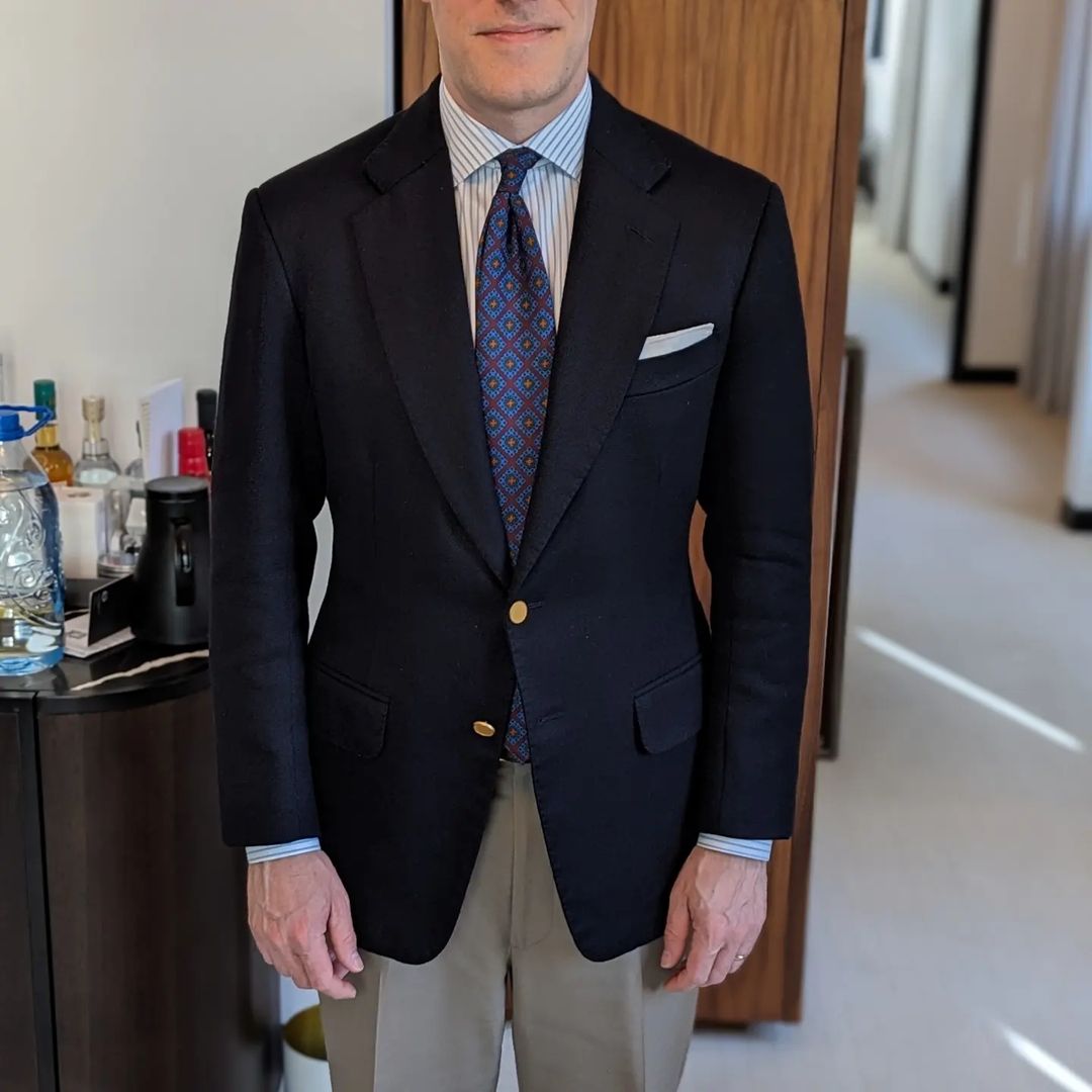Example: you're wearing a navy sport coat with tan trousers. Should you wear