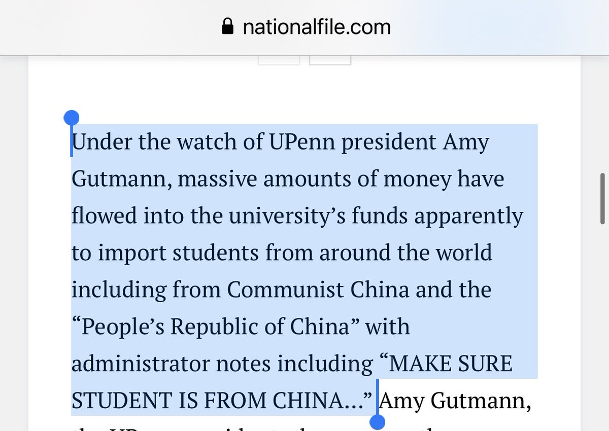 “massive amounts of money have flowed into the university’s funds apparently to import students from around the world including from Communist China and the “People’s Republic of China” with administrator notes including “MAKE SURE STUDENT IS FROM CHINA…” “