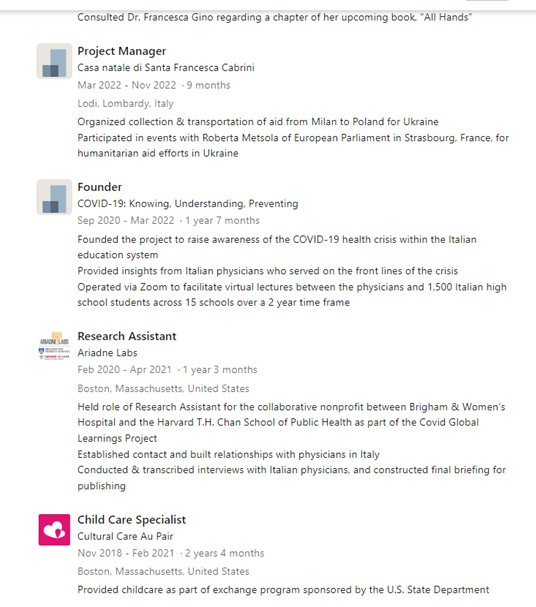 So, in summary, we have two early 2020 Covid in Italy projects that were both disappeared, and both of them involve and unknown and underqualified au pair that works with Harvard and USAID??