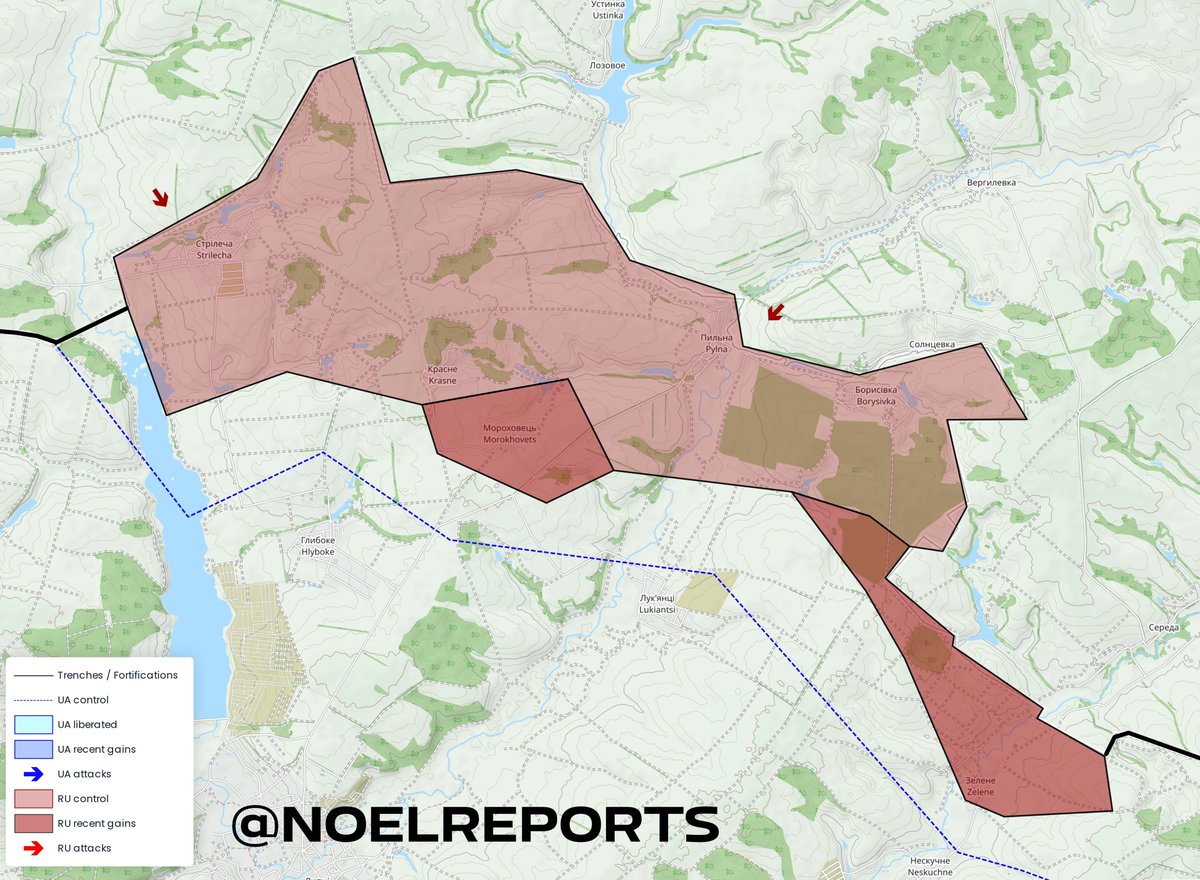 Kharkiv region. During the past 24 hours, Russian forces made territorial gains by taking over control over 3 more villages: Morokhovets, Oliinykove and Zelene. Fighting occurs on the outskirts of Vovchansk, where Russian forces breaking into the airfield area.