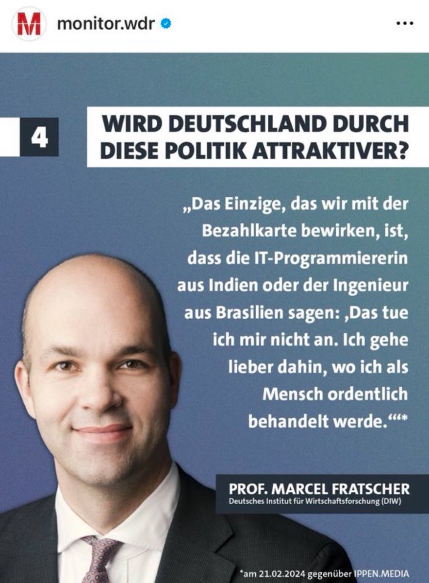 …Kürzungen von Leistungen sind alles „Pull Faktoren“, die vor allem die #Zuwanderung von hochqualifizierten Migrant*innen reduzieren — weil diese Menschen meist eine Wahl haben, ob sie Deutschland oder ein anderes Land wählen — wogegen es die Zuwanderung von Asylsuchenden …