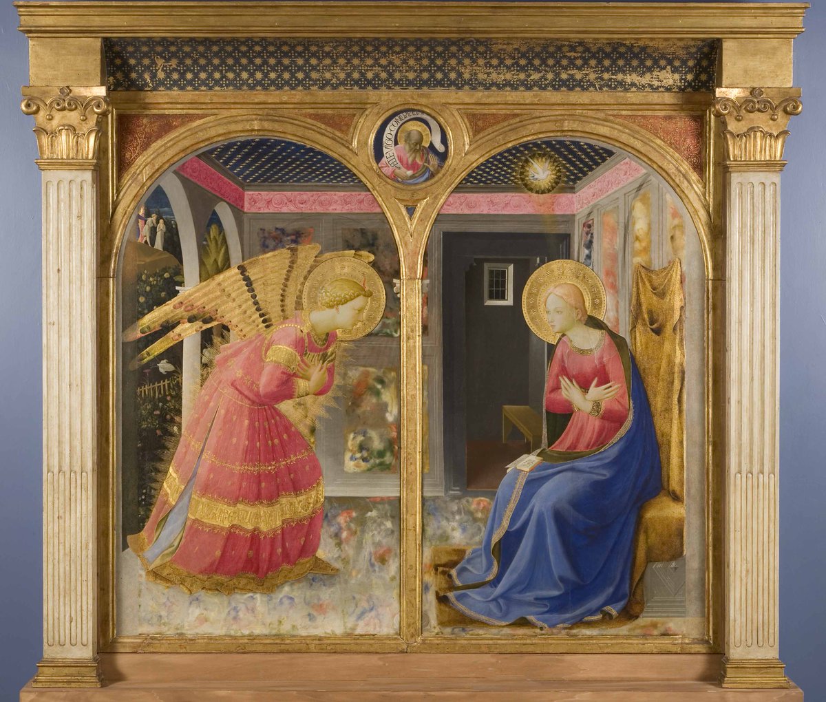 Fra Angelico, Zwiastowanie, ok. 1430, 175×180 cm, obraz ołtarzowy, tempera na desce, Muzeum Diecezjalne w Cortonie.