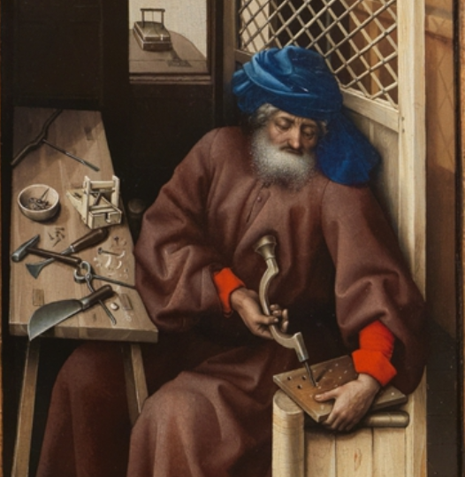 Robert Campin, prawe skrzydło Ołtarza Mérode (Tryptyk Zwiastowania), fragm., ok. 1425–1428, The Cloisters w Nowym Jorku.