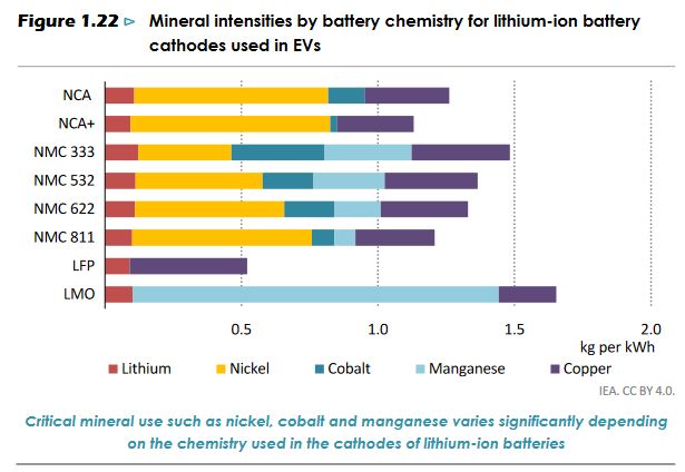 1️⃣Les batteries au lithium dites NMC (Nickel-Manganèse-Cobalt) et NCA (Nickel-Cobalt-Aluminium), également présentées dans les graphiques ci-dessous en low ou high-nickel.