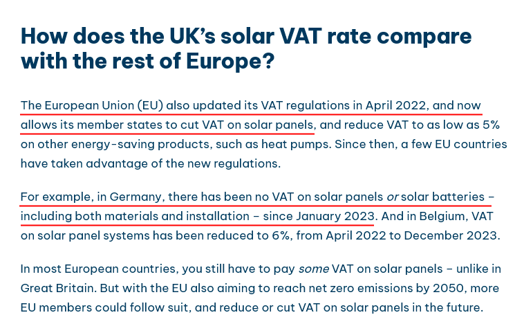 Let's take a random lie as an example: "Within the EU, the UK would not have been able to cut VAT on the installations of solar panels, heat pumps and insulation to zero"