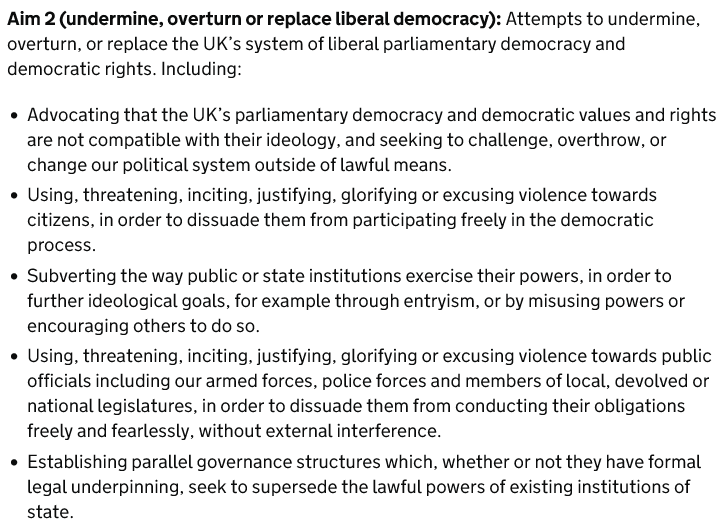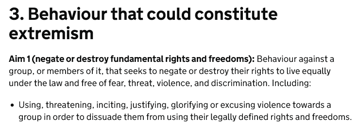 The Tories have published their new definition of extremism. It includes 3 components.