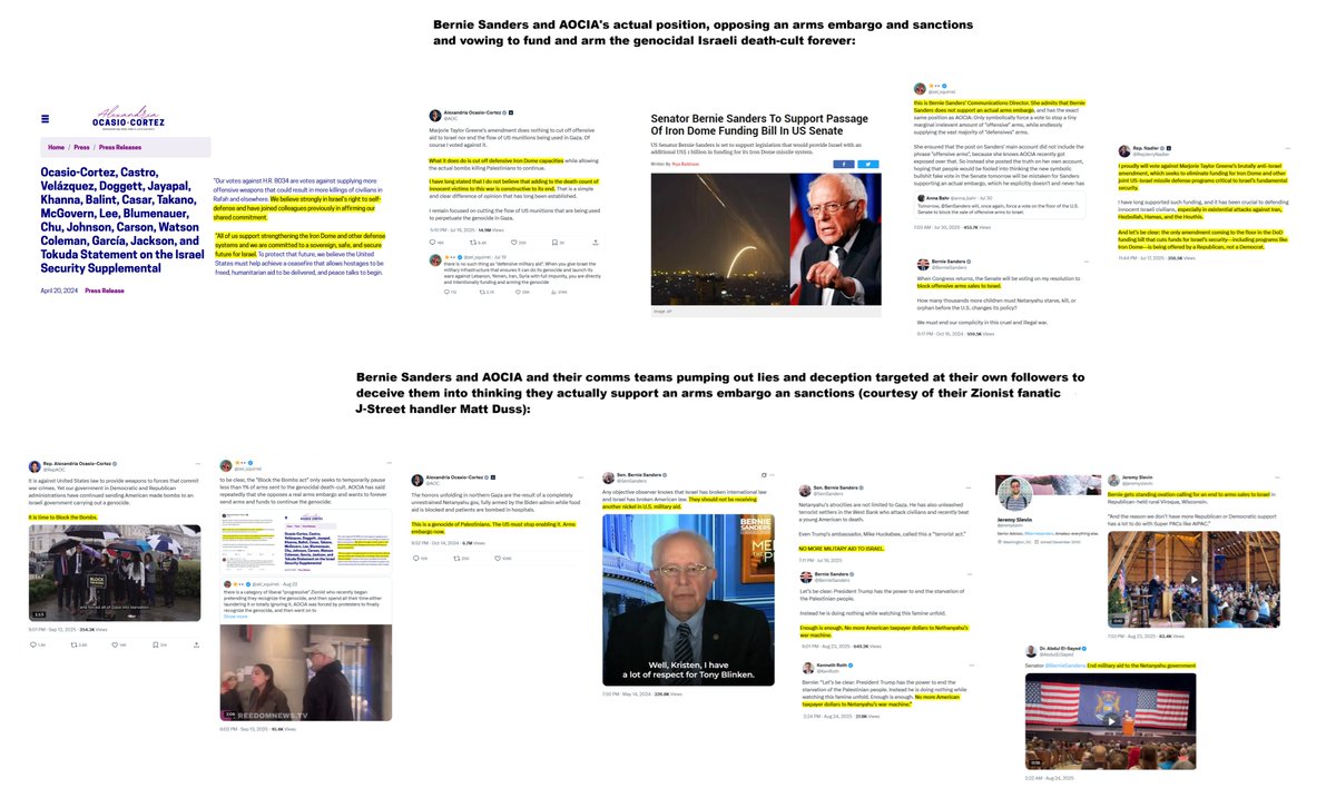 again, this is very important: As Bernie Sanders and AOCIA pretend to recognize the ongoing genocide, instead of supporting an arms embargo to stop it they decided to launch a deception campaign targeted at their own followers to pretend they support it: