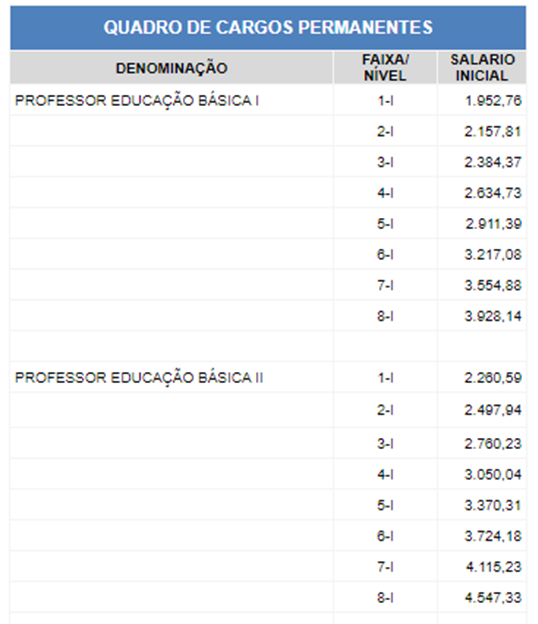 Este é o quadro salarial dos Professores da Educação Básica do Estado de São Paulo. +